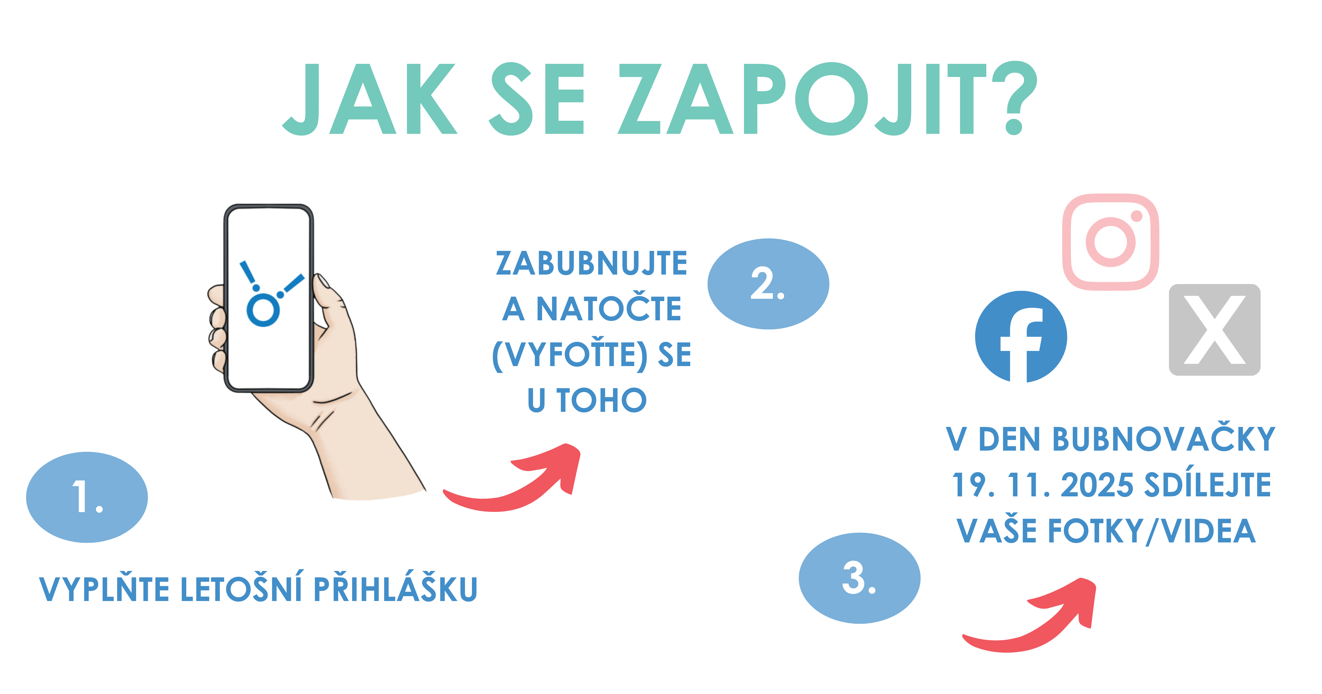 1. VYPLŇTE PŘIHLÁŠKU: Dejte vědět, že se zapojíte - a my vás přidámedo mapy účastníků letošní Bubnovačky.